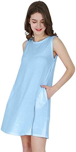 Omzin ワンピース ノースリーブ ゆったり 伸縮性 柔らか 薄手 膝丈 ロング パジャマ バーゲンセール インナー シンプル レディース 部屋着 吸水速乾 タンクトップワンピ ひざ丈 切替 ルームウェア 無地